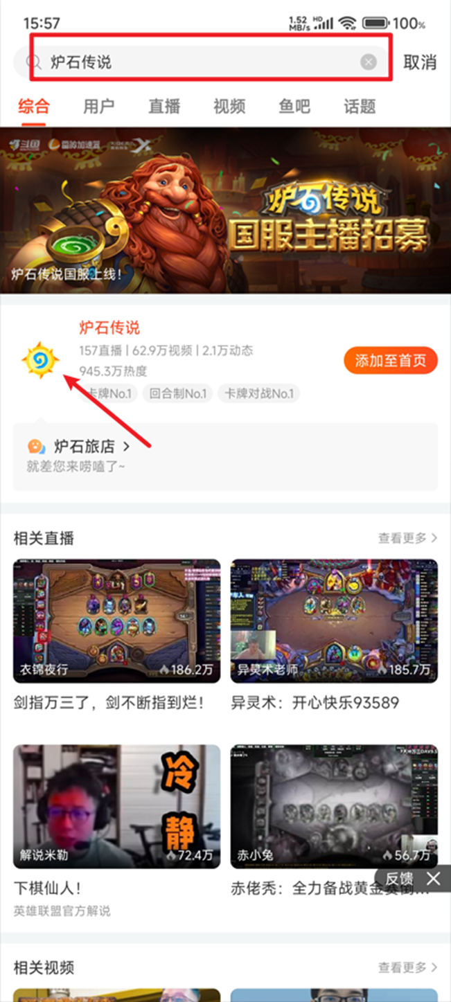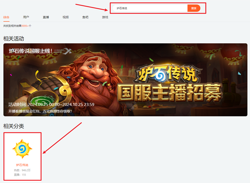 第一步:上斗鱼搜索【炉石传说】;
