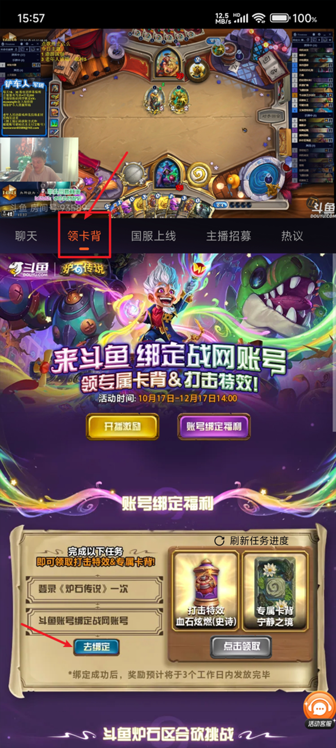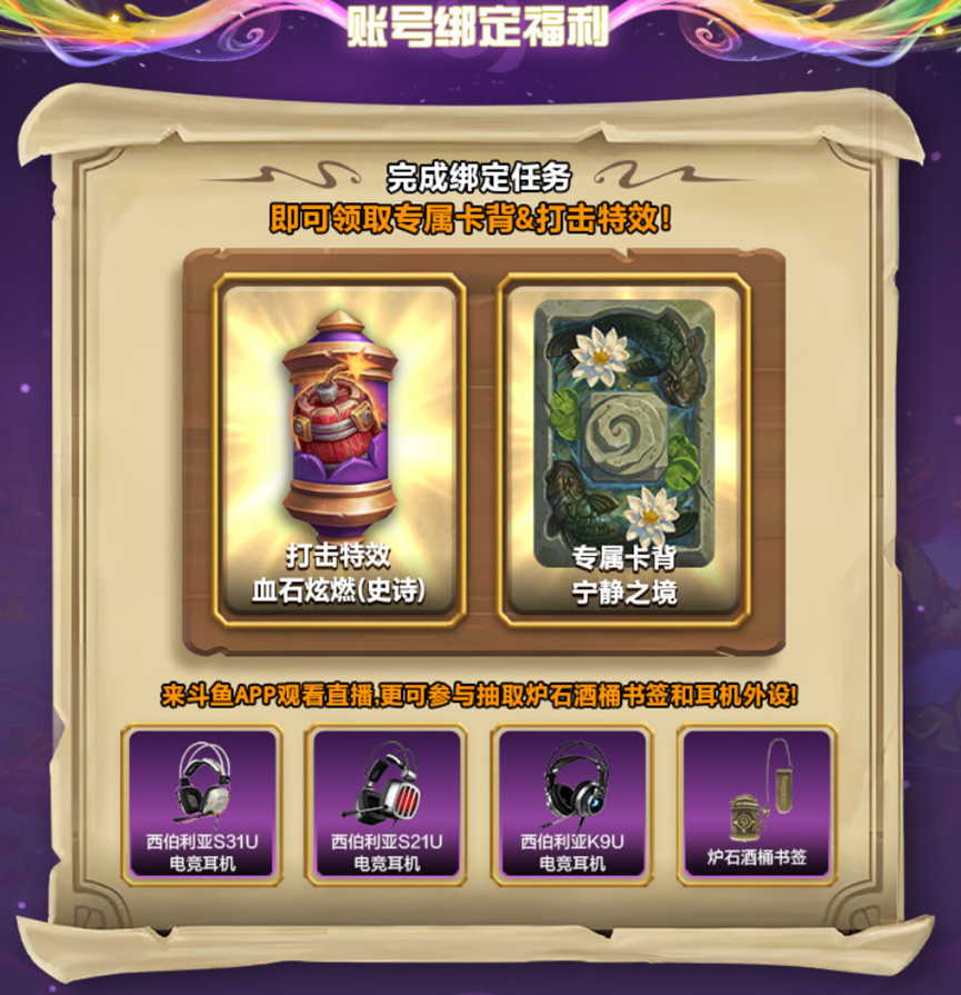 上斗鱼绑定战网,领炉石传说专属卡背&打击特效!