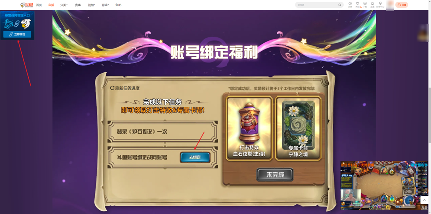 第三步:在活动页直播间下方,点击【去绑定】按钮,完成斗鱼&暴雪账号绑定;