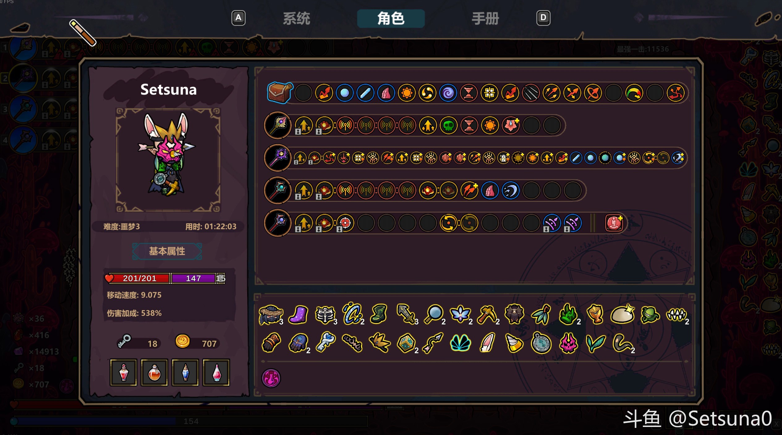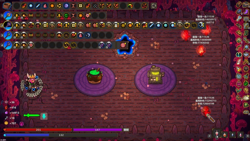 其中火焰给广域增幅,这样不占主力法杖格子。魔能升阶是重中之重,只要获得橙色法术,随便d两下就能获得,这样在第四关的时候可以买第三关的法杖,买带橙色法术的法杖,随后全变成魔能升阶,让主力法杖里的法术全变成满星。