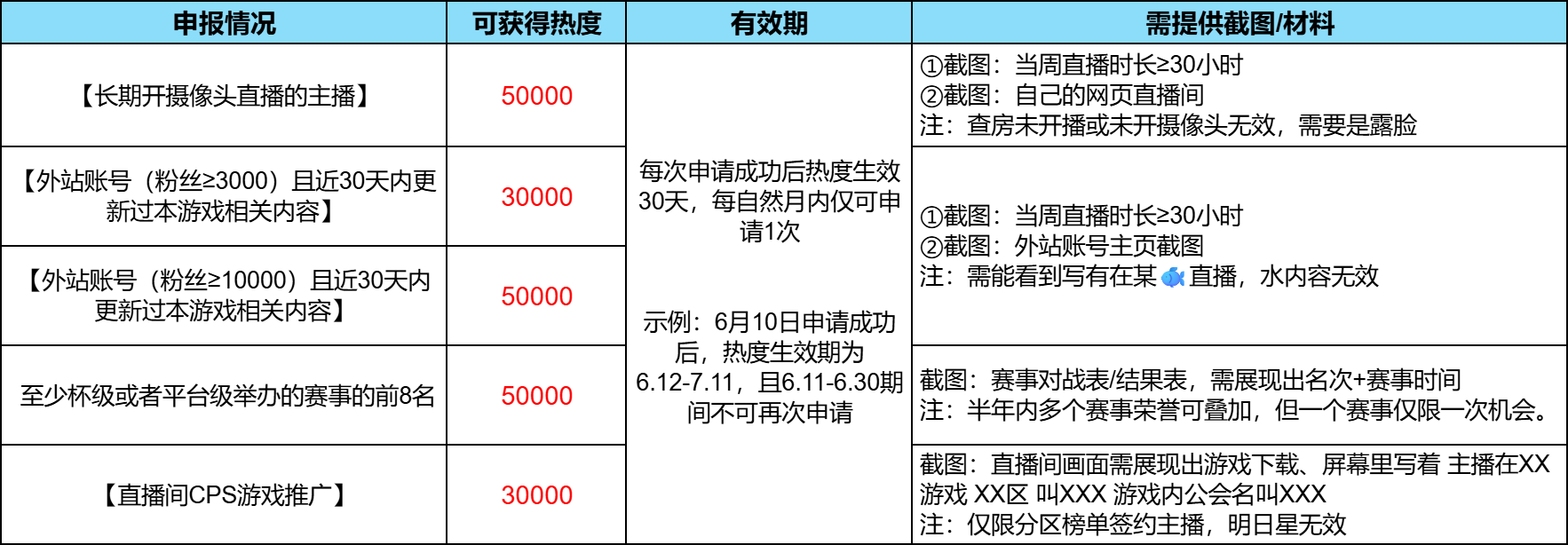 每月对分区内所有公会开播主播进行数据考核(仅限二次元游戏分区、体育游戏分区),每月热度包在公会群内公示。