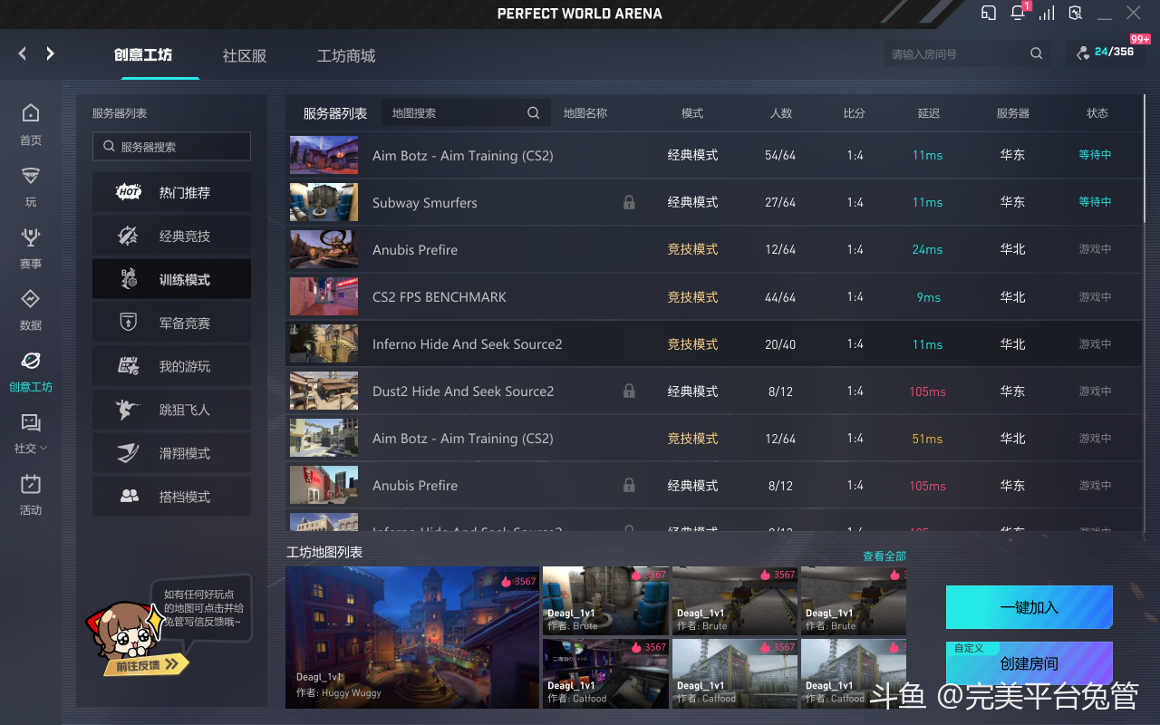 竞技之余别忘了舒缓紧张的神经,全新升级的创意工坊版块集成了丰富的地图和玩法,经典模式与创意地图一应俱全,想体验别样乐趣或进行专项训练,均可在此找到合适去处,与好友免费体验。