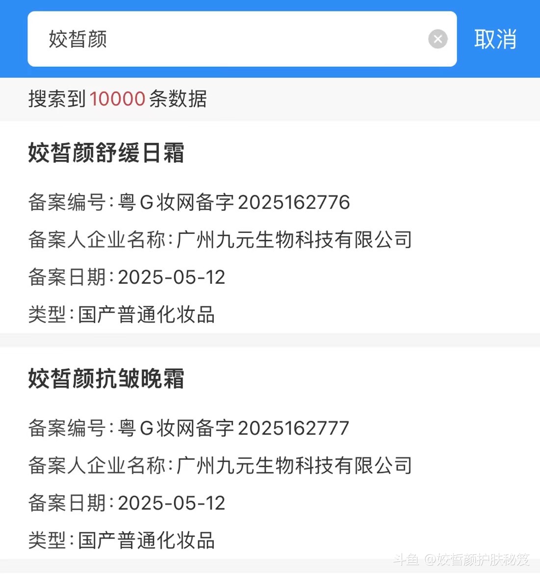 1️⃣ 广州九元生物研发(药监局备案号:粤G妆2025162776/7)