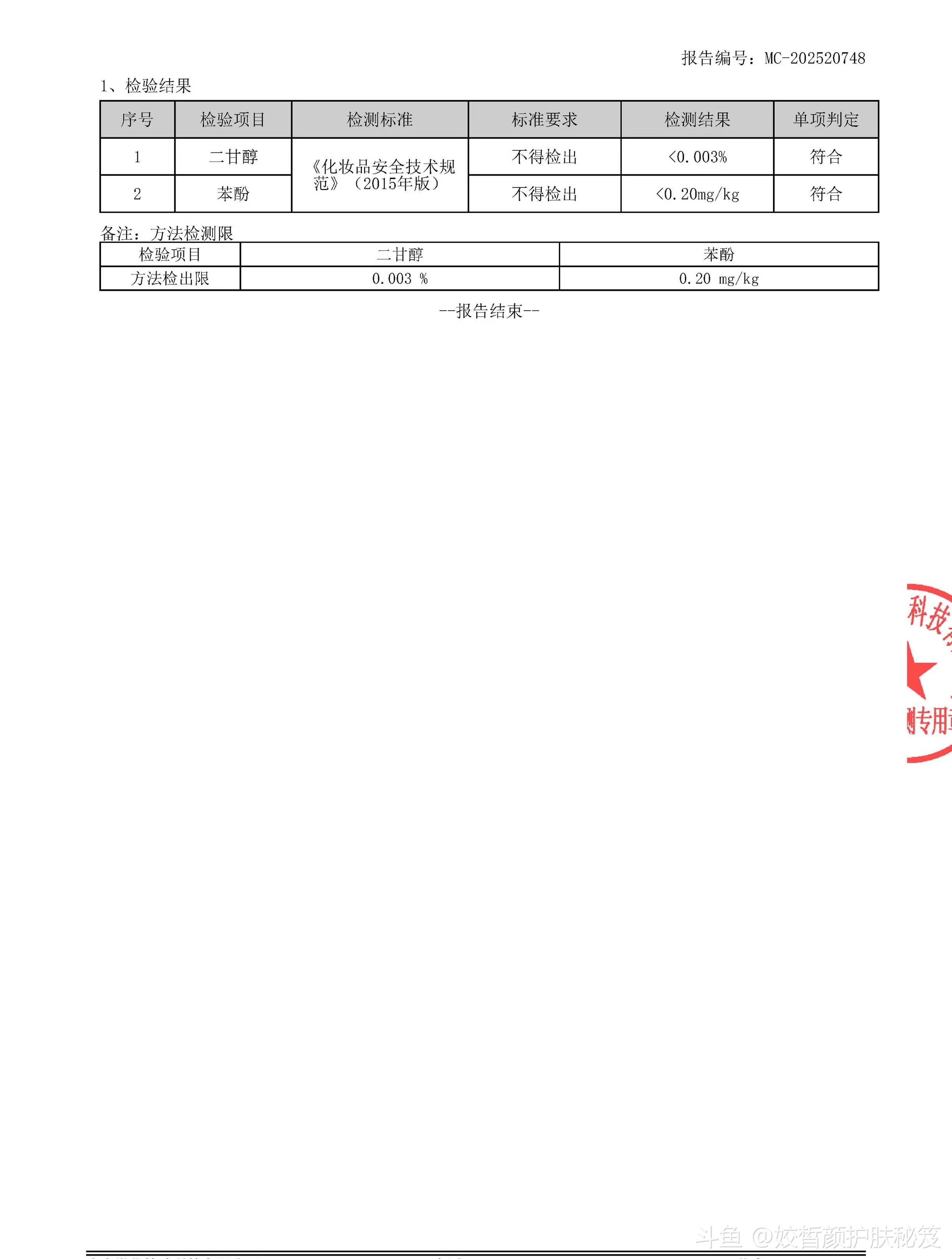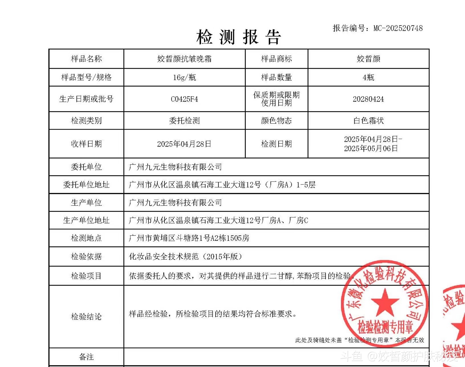 → 核对检测报告编号:MC-GX202504910(日霜)/911(晚霜)
