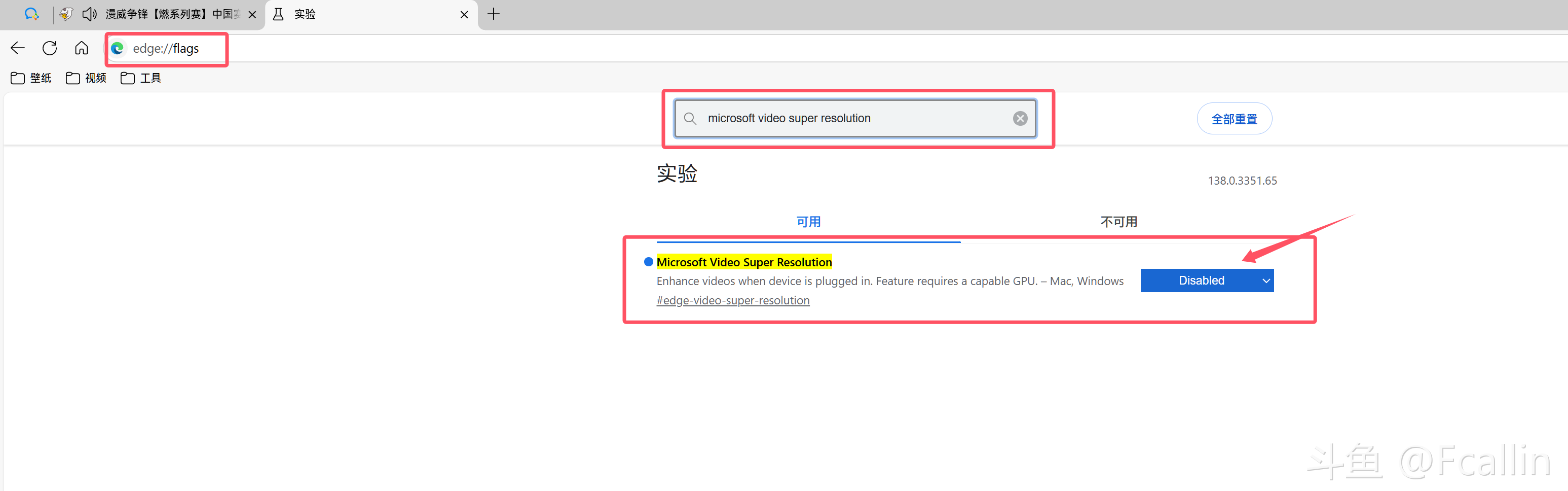 把这个开关改成‘disabled’(这个是关闭edge的视频增强,但是英伟达的视频增强却生效了)