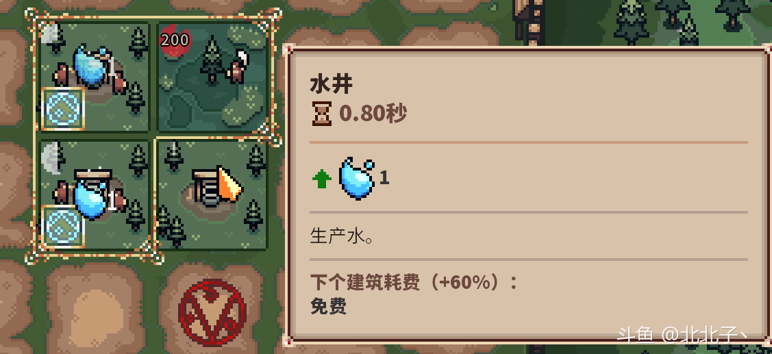 然后是局内操作,快捷键Q和E可以调整凝视的方向,shift可以拖动建筑的位置,建筑移动后会有一段时间生产减速(毕竟刚搬家),但是水井除外,水井没有建筑耗费,可以随便拆随便建,也可以随便移动,没有生产减速,可以有效解决弹幕吐槽凝视空转的问题。最重要的资源是木头,升级部队上限和兵种强化需要成千上万的木头,最没用的资源是黏土,除了升级凝视需要的80黏土,剩下的作用就只剩下修城墙了。