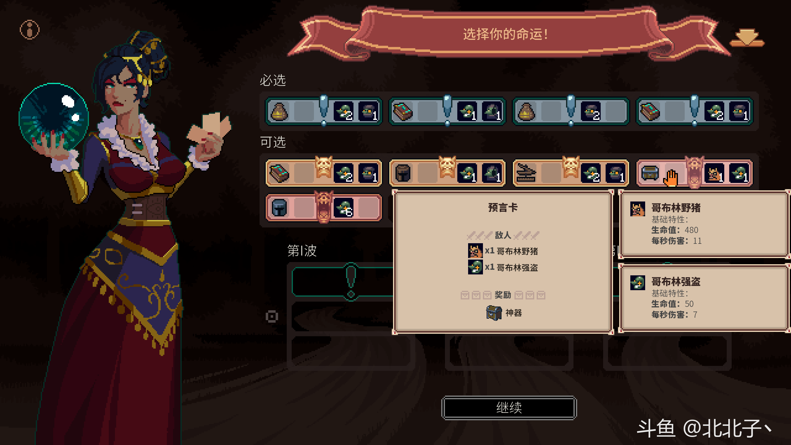 众所周知,预言可以选择接下来打怪的难度,并且提供额外奖励。这是一个滚雪球的游戏,不拿奖励也会被逐渐提升的怪物强度滚雪球,可能会一波打不过波波打不过。但是,不要去贪图奖励而盲目提高难度,奖励用不到的话也就只是5粉币罢了,多提高的难度,多扣的血可不是一点半点,活着才有发育的空间,往往正确的取舍比盲目全押要正确。优先拿建筑升级和神器,其次是粉币,其他的酌情取舍。