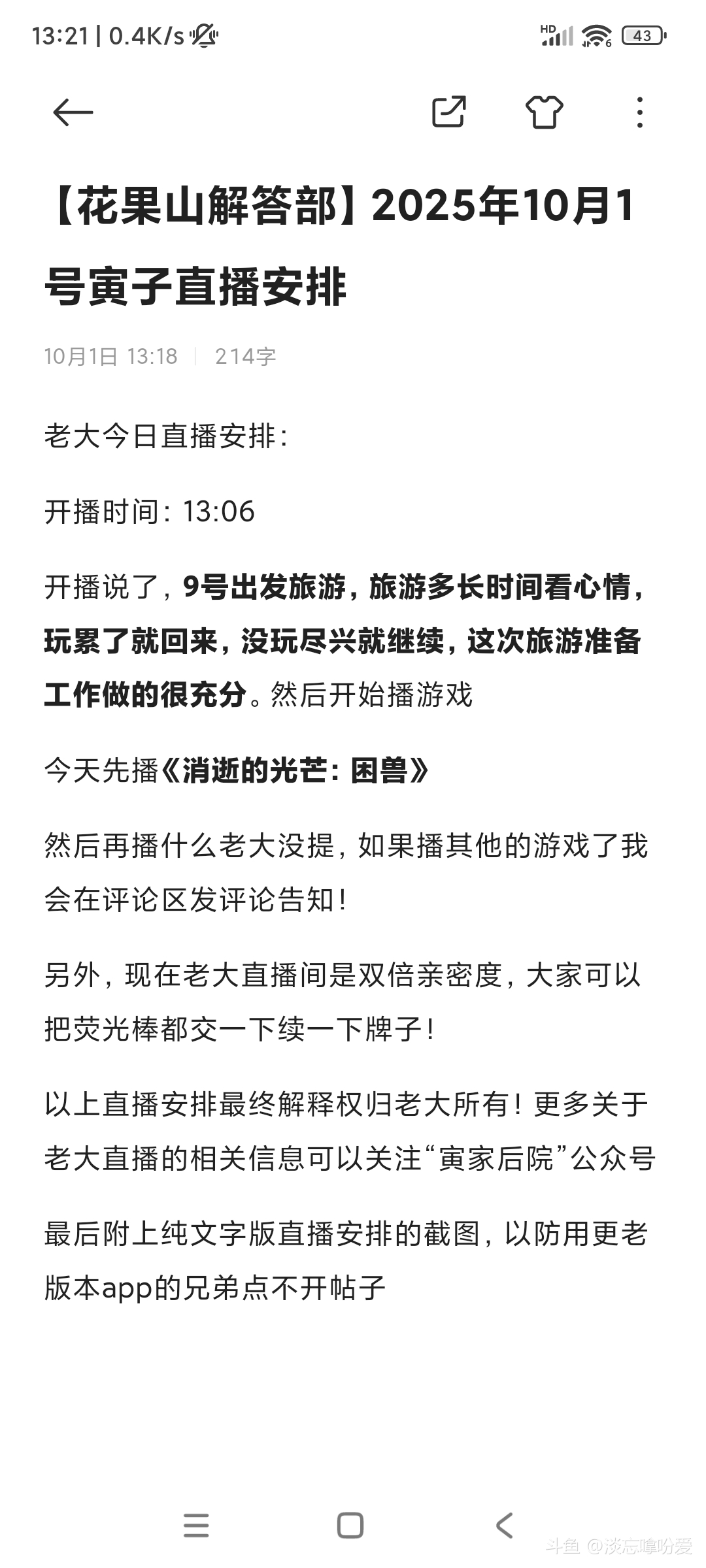 最后附上纯文字版直播安排的截图,以防用更老版本app的兄弟点不开帖子