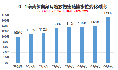 2、作为辅助而言在月绽放队伍中,根据挂水位变化,奈芙尔自身的月绽放伤害变化如下: