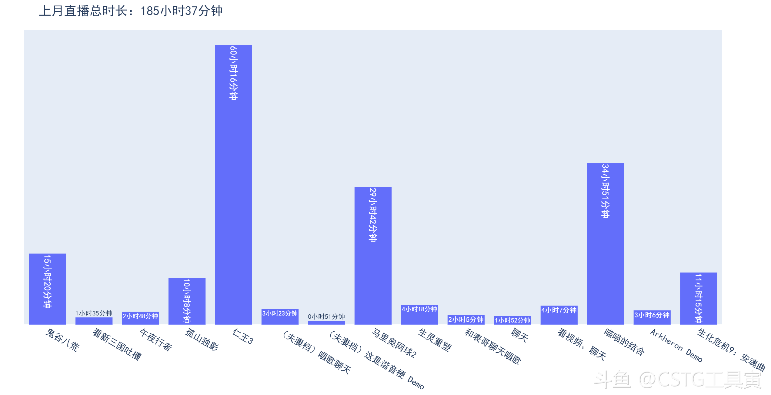 以上就是老大2月的直播情况,这个月老大一共直播了22天,浅尝辄止地试玩了10款游戏。