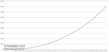 此图是我开CE,大概把学满五本秘籍所需的技能点所需的经验值弄个数,因为操作失误少了4级,不过曲线大概看看就行,仅供参考。