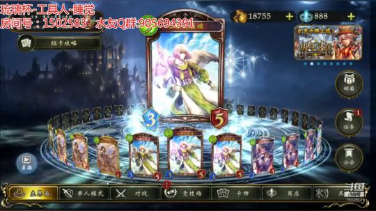 琉璃杯(预选赛)DAY2 第一轮(8进4)。使用的卡组分别是:式神法(川神舞提供),西风反甲教(营地原卡组无修改),潜伏皇(营地卡组修改了一张 王城→关卡),拉拉百鬼死(营地卡组改没改记不清楚了) 房间号:1502583 水友Q群:905694391