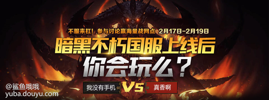 开杠话题:暗黑不朽国服上线后,你会玩么? 红方观点:我没有手机 蓝方观点:真香啊