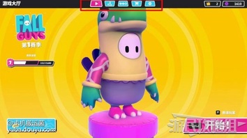 游戏正中间是玩家角色当前的形象,上方是游戏菜单,从左往右第一个选项是当前显示的游戏主界面。右上角处为此时玩家拥有的游戏货币,其中紫色货币每次挑战关卡都会获得,皇冠需要玩家在最终关卡拿到第一名才能够获得。