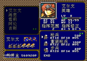 选关: 完成一个版面以上并储存进度之后,在提取进度画面,将光标停在所需进度上,输入:左、右、START、C即可。隐藏商店:在战前准备画面输入A、B、A、B、上、下、左、右、START、B即可。隐藏标题画面:在片头DEMO时,一直按住右下和B,只标题画面出现,即可见到两位兄贵“阿顿”和“萨姆逊”。音乐测试:在战斗中,将光标停在坐标(2’2)的位置上,按住B键即可。(以上的秘籍地球人都知道,下面的知道的人不多吧?)真隐藏商店:兵士配置画面中,输入B、START、右、左、下、上、B、A、B、A、上、下、左、右、START 。操纵敌人:地图画面,输入上、左、上、右、A、左、下、B、下、右、A、B、下、右、A�