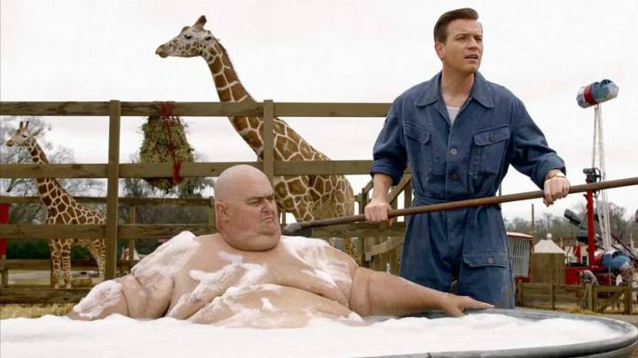 《大鱼》是一部2003年出品的美国奇幻片,故事改编自丹尼尔·华勒斯(Daniel Wallace)于1998年出版的《大鱼老爸》(Big Fish)改编而成。由蒂姆·伯顿执导,由伊万·麦克格雷格、阿尔伯特·芬尼和杰西卡·兰格等联袂出演。 电影以孩子的口吻来叙述其爸爸传奇的一生。爱德华·布鲁姆是个喜欢吹牛的老头,总喜欢炫耀年轻时旅行推销的经历,儿子并不相信,觉得父亲很虚荣浮夸,父子关系渐渐疏离。直到父亲不久于人世,儿子决定回去见父亲最后一面,他终于领悟到父亲充满激情和想象的一生。