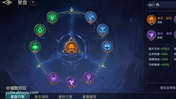 星盘我推荐这套纯肉星盘,本套星盘的最大亮点是出门就很肉。每次升级都会恢复15%最大生命值血量,满级更是能提供965额外生命值(相当于一件防御神装),有了这套星盘,在对抗中让你的对手怀疑人生。抗揍到让人看不懂!
