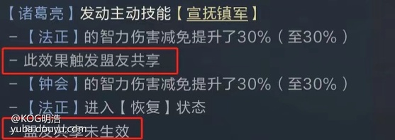 增益状态所包含的效果其实非常多,除了常见的闪避、属性加成、减伤、增伤、暴击、神算以外,如抵挡、盾阵这类较为特殊的增益效果也可以共享。但有些技能中的不同效果,钟会是单独判定共享几率的,如宣抚镇军提供的恢复与减伤效果,钟会将分别判定是否共享。