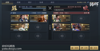 可以看出陆抗在实战中的表现非常稳定,自身有着优秀的属性作为基础,保证伤害输出的最低下限,搭配增益效果较多的队友后输出猛涨。最主要的是钟会可共享治疗的设定,他在担任主将时可无惧爆头,担任副将时稳住前排,可集全队优势于一身。