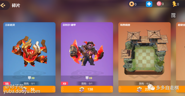 ①.商城通用碎片分3种:棋盘碎片、棋手碎片、棋子皮肤碎片