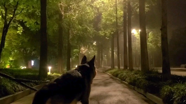 手机声音调最大,静静享用 凌晨两点和狗子在瘦西湖旁散步,道路两侧的水杉笔直葱翠,刚下过雨有一点朦胧的雾气,鸟儿的叫声空灵悠远,路灯的光穿过茂密的杉树枝投射下来,好像误入森林秘境。 扬州不愧是国家园林城市,国家森林城市,到处植物繁茂鸟语花香