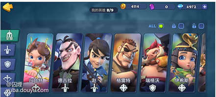 目前游戏中有9个英雄,不同的英雄定位属性不同,大致可分为4类,到时候可以根据个人喜好进行选择