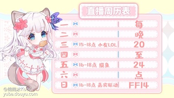 这周猫猫冰比较忙,除了周一的例行休息周二四六下午都要搬砖还要抽空打第二针和去医院各项复查周三下午的LOL车车欢迎小可爱们刷卡上车周天下午会跟几位神秘的可爱嘉宾联动!好紧张喵!记得来给猫猫打call!(猫猫鱼吧置顶有礼物~)