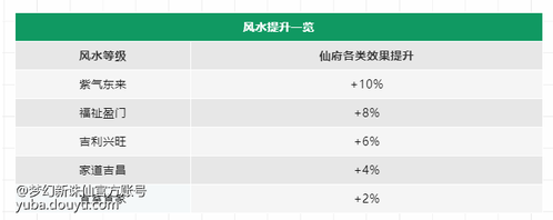 好的风水可以提升各类产出,而且仙府耐久和整洁度损耗亦会减少。道友们不妨根据五行相生相克原则摸索如何