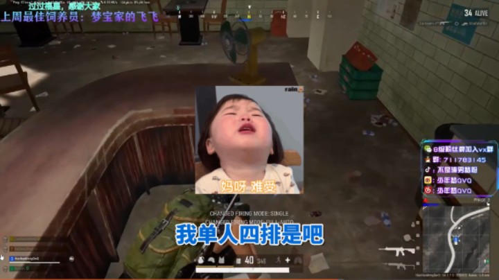 看点1:不会吧不会吧,掉线3次的梦梦居然还能吃鸡!? 看点2:玩着玩着,怎么就成了单人四排了? 子母画面因为原始视频不是原画,所以更糊了,暂时找不到优化的方法,就将就着看吧[鲨鱼哭] 然后录像里梦梦声音听起来更哑了,虽然也更苏,但我们主播还是要好好保护蜜嗓阿~
