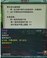 藏剑彩蛋 百里禾香彩蛋系列 新门派藏剑如期上线,这次百里禾香又给侠士们带来了怎样的新惊喜呢?一起来看看吧 藏剑的百里禾香还是和之前其他地图的一样,6个刷新点,2小时刷新一次位置。 点位如图所示: 找到百里禾香之后接取任务[秀水灵山隐剑踪],百里禾香让你去给二庄主叶晖送茶叶 (实际上是为了找大庄主叶英要签名。 先去给二庄主叶晖那打探大庄主叶英在哪儿,顺道送茶叶。 大庄主叶英在锦带桥上(位置前面地图),给庄花端茶别忘了提一句是百里禾香的茶叶。 庄花会发出一起看花灯的邀请,接受邀请,然后就可以要签名了|・ω・`) 好耶!拿到庄花的亲笔签名了,给主城茶馆的百里禾香送去。 然后就获得了背部挂件【剑流星】。 交任务的界面并没有奖励详情,挂件会直接放进背包。 挂件长这样:[topic src="117955"]#资讯[/topic]