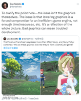 《心跳文学部》制作人Dan Salvato发推表达了自己对《宝可梦传说:阿尔宙斯》游戏画面质量的不满。Dan Salvato表示宝可梦IP的总收入已经超过了MCU,超级马里奥和哈利波特的总和,但为什么宝可梦LA的游戏画面看起来像来自GameCube游戏。 Dan Salvato随后表示要澄清一点,问题不在于图形本身。主要问题是,这反映了降低画面质量是被迫对低效的游戏引擎的妥协,这表明制作团队没有足够的时间和资源等等。糟糕的画面质量可能意味着游戏开发非常困难。 《宝可梦传说:阿尔宙斯》是《宝可梦》系列第八世代的组成作,也是《宝可梦》系列首部动作角色扮演游戏。并于2022年1月28日在全球同步发售。[topic src="117955"]#资讯[/topic]