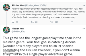 距离《宝可梦传说:阿尔宙斯》的正式发售日期越来越近,关于该作的更多消息也被放出。据《宝可梦》系列知名爆料人Riddler Khu的爆料,《宝可梦传说:阿尔宙斯》将是系列正统作品中流程最长的一作。 在爆料推文中Riddler Khu写到:“《宝可梦传说:阿尔宙斯》游玩体验很硬核,玩家需要合理分配资源,需要注意浆果、矿石和其他宝可梦的掉落。随着游戏流程的推进,玩家需要购买物品槽与制作宝可梦球,并且要谨慎地使用,还要避免重复的无意义收集,让流程更顺利平滑”。 Riddler Khu后续说到:“《宝可梦传说:阿尔宙斯》拥有在系列正统作品中拥有最长的游戏流程,玩家在该作的最终目标是捕捉阿尔宙斯(不知道有多少玩家会完成它),以及完成图鉴”。 Riddler Khu在回复评论时还谈到了该作的难度问题,他说该作的难度要“看情况而定”,“战斗动作方面需要一些练习,BOSS战有技巧”,而其他部分是投入时间练习的。如果你继续练习下去,单人游戏是很容易的”。 《宝可梦传说:阿尔宙斯》将于2022年1月28日发售,该作的冒险舞台是过去的神奥地区。神奥地区是个颇具特色的地方,中央耸立着天冠山,并且拥有广阔的大自然,同时也是《宝可梦钻石·珍珠》的冒险舞台。而这次的故事则是发生在很久以前的神奥地区,并且当时还没有宝可梦训练家和宝可梦联盟的概念。[topic src="117955"]#资讯[/topic]