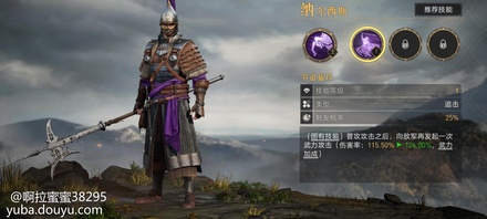 勇武无双丨骑兵专精,自带迎击技能,满阶后伤害不俗,可相互配合武圣、虞夫人组成勇武骑。