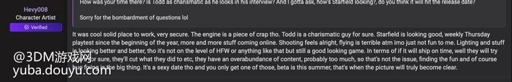 B社前员工Hevy008(角色艺术家)在国外Resetera论坛透露,B社的工作环境非常棒,Todd Howard是一位非常有魅力的人。他接着说,从今年开始,每周四都会有《星空》的游戏测试。游戏里的射击感不错,但飞行机制就不太好,可能是因为引擎原因,不过其他部分还是挺不错的。《星空》的图形和光影表现有了很大改进,画面感觉非常棒。虽然与《地平线:西之绝境》相比可能要差点意思,但整体看还是蛮好的。