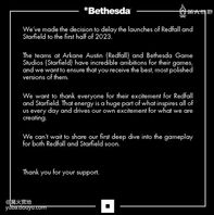 Bethesda 宣布《星空》与《红霞岛(Redfall)》将延期至 2023 年上半年推出。对此,Bethesda 向所有支持的玩家表示歉意,并表示将尽快向玩家深入展示《星空》与《红霞岛》的游玩内容。