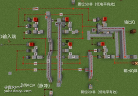 有红石信号为1 无信号为0只有活塞全推动,输入全为1时,输出才为1。有了与非门,那剩下的所有逻辑门全都可以组合而成了,如或门就是非与非门,像图二所示,那岂不是说,再这么想下去,所有的电路都可以在mc中具现了,只不过是工作量大小的问题了,这样全加器,编码/译码器,各个常用元件例如触发器计数器全都可以做出来(一个普通逻辑门都这么大剩下的就不敢想了)所以心血来潮就先做了一个D触发器试试水(不过各个红石有延迟,距离太长的线要中继器相连,这样就线路间存在竞争冒险,像这种有关时序的效果就会很不理想)剩下的什么编码器全加器啥的就懒得做了,纯纯列出真值表照着连线的事,不过布线是真的恶心啊。这就体现出multisim的强大了试了试至少置位复位没问题的,时钟信号不好验证就不搞了照理来说是没问题的。[topic src="136048"]#游戏交流[/topic]