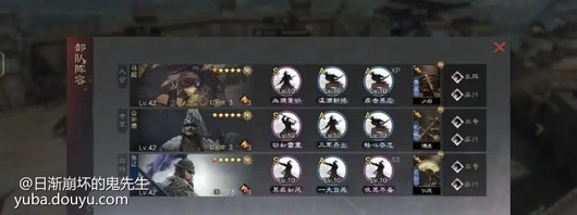 2、带反计就别带浑水,带浑水就别带反计,前锋反计攻其,木鹿就绝水利兵。3、单骑换垒实强度会提高,但性价比没单骑高。4、大将必不可少,词条不重要,除机敏都管用,因此平民也能打,不锻造都能用。
