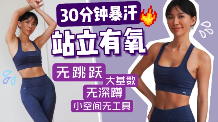 30分钟全程站立燃脂有氧运动, 无跳跃,无深蹲,膝友好。难度系数为”能笑着爆汗”(低)的运动!适合入门和大基数,也适合其他所有水平冬天不想趴在冰冷的地面,不想出门跑步,不想去健身房用有氧器械,那就做这个小空间居家无工具比其他器械有氧更有趣的运动吧!全程分5组很好坚持,来周六野一下吧!