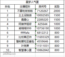 排名方式:直播时长*50%+观看时长*30%+礼物流水*20%