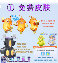 3款免费皮肤:花灯灯、小怪兽芝顿、游梦梦/树芽芽(2选一)