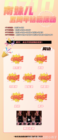 南妹儿直播五周年钻粉活动!!! (请忽略残缺版海报[鲨鱼娘大叫] 7月10日当天开通/续费钻粉可以得到对应周边~ 异型蛋如图二视频所示 目前样品还在设计中,预计7月末会陆续发货 另外:送*钻粉飞机*可以得到ai南妹的舞蹈视频,不过可能不太性感[龇牙]