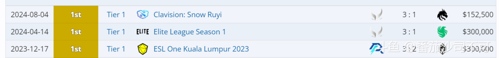 勘误:我之前在直播间说xm今年的T1冠军比maybe整个职业生涯都多,其实是错的。 超哥职业生涯4个T1冠军,而xm只有3个,还有雪如意这种定制冠军。 由于不严谨犯了这种错误,真的非常抱歉(数据图来自:liquipedia.Dota2)