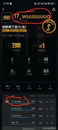 最后放战绩和改名的图,大家自行品,希望兽能给这种挂狗踹一踹,别给17丢人。