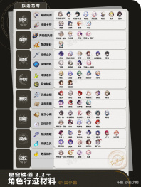 开拓者好,我是丢小鹅~ 为你带来【星穹铁道3.3】全角色晋阶行迹材料~ 👉🏻历战余响/拟造花萼/专属材料/凝滞虚影,应有尽有! ⭐️3.3上半:风堇(新)、大黑塔、米沙、希露瓦、娜塔莎 ⭐️3.3下半:赛飞儿(新)、阿格莱雅、青雀、雪衣、素裳 [topic src="207874"]#崩坏星穹铁道[/topic] [topic src="213860"]#星穹铁道[/topic] [topic src="228758"]#星穹铁道攻略[/topic] [topic src="240246"]#在黎明升起时坠落[/topic] [topic src="240247"]#风堇[/topic] [topic src="237694"]#大黑塔[/topic] [topic src="240248"]#赛飞儿[/topic] [topic src="237695"]#阿格莱雅[/topic]