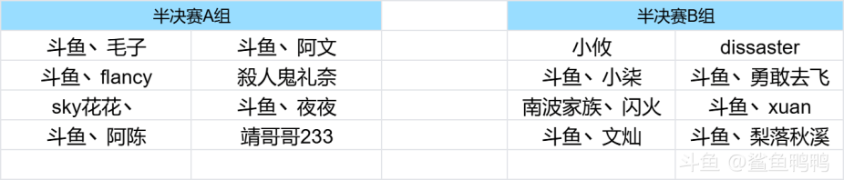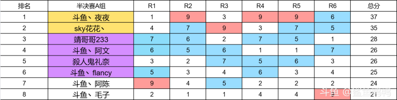[topic src="45929"]#云顶之弈[/topic][topic src="222698"]#斗鱼群英杯[/topic] 图1:群英杯1月7日-1月8日半决赛分组名单 图2:半决赛A组积分榜,TOP2晋级1月10日决赛,TOP3~6进入1月9日复活赛