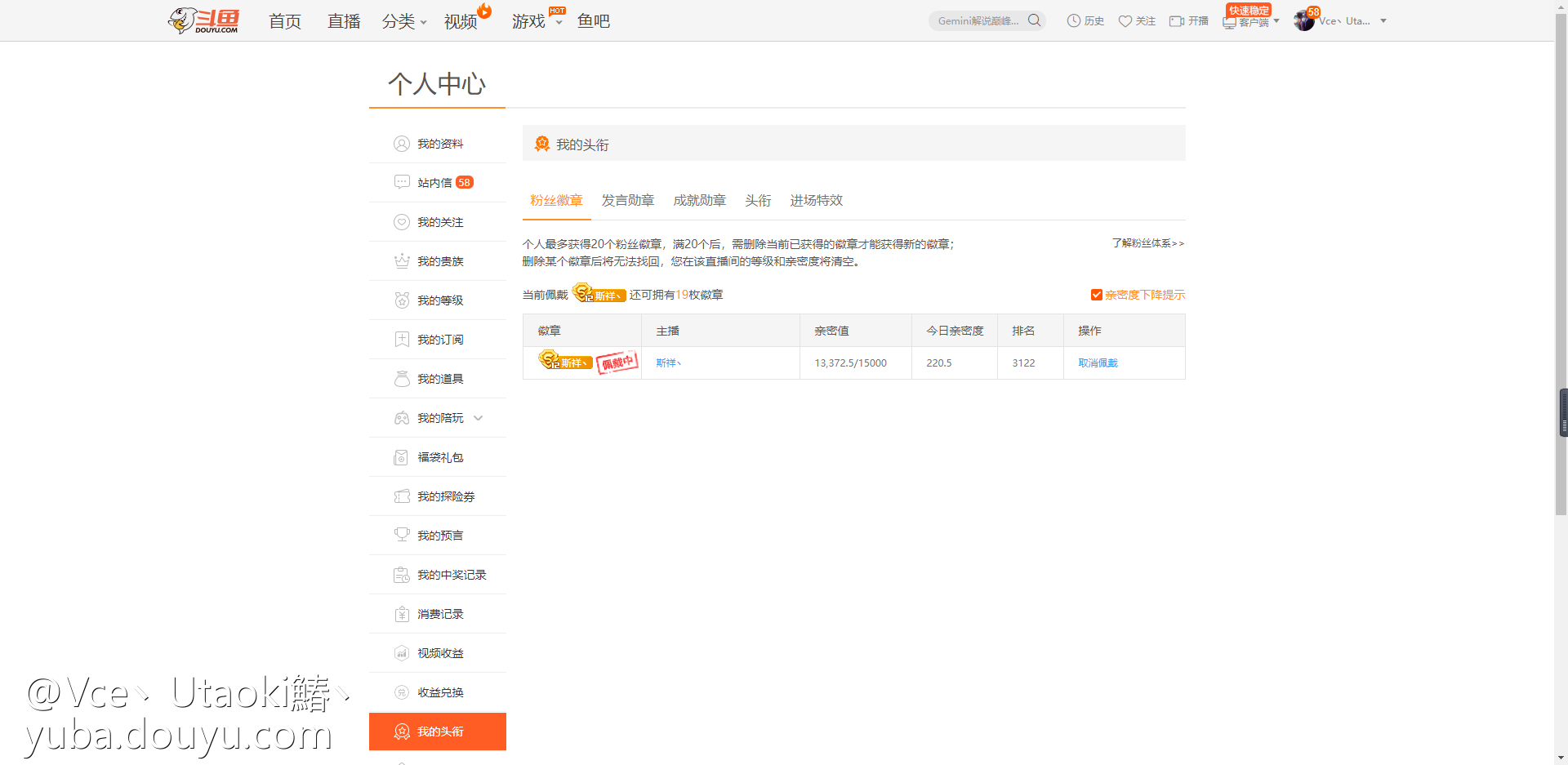 粉丝牌截图-斗鱼社区,直播爱好者的聚集地
